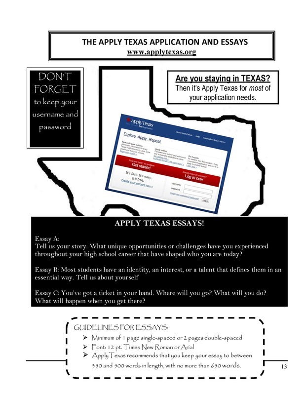 Please review the senior checklist and the Apply Texas Application & Essay Forms. Complete those items as soon as possible. Please reach out to your counselor if you have any questions.