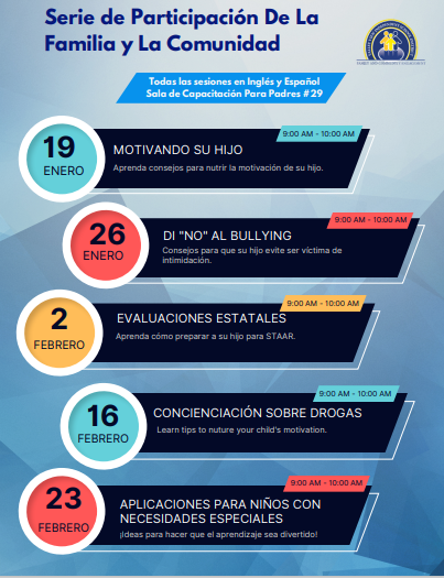 Scheduled events for January and February 2023. Eventos de enero y febrero del 2023.